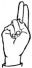 На ћирилици написано ПЕТАР МИЛОШИЧЕВИЋ састоји се из 16 слова [?]. Исписано ћириличном једноручном азбуком за глувонеме: